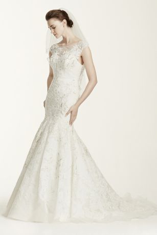 Oleg Cassini Lace Cap Sleeve Trumpet Wedding Dress / Chantilly Lace Cap Sleeve Mermaid Wedding Dress David S Bridal : Oleg cassini lace and beaded trumpet wedding dress nwt $850 $1,450 size: